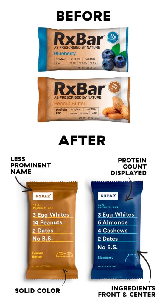 This simple yet powerful move didn’t just refresh the packaging—it revolutionized the brand’s identity. By emphasizing ingredients like egg whites, dates, and nuts, RXBAR connected with health-conscious consumers who valued transparency.